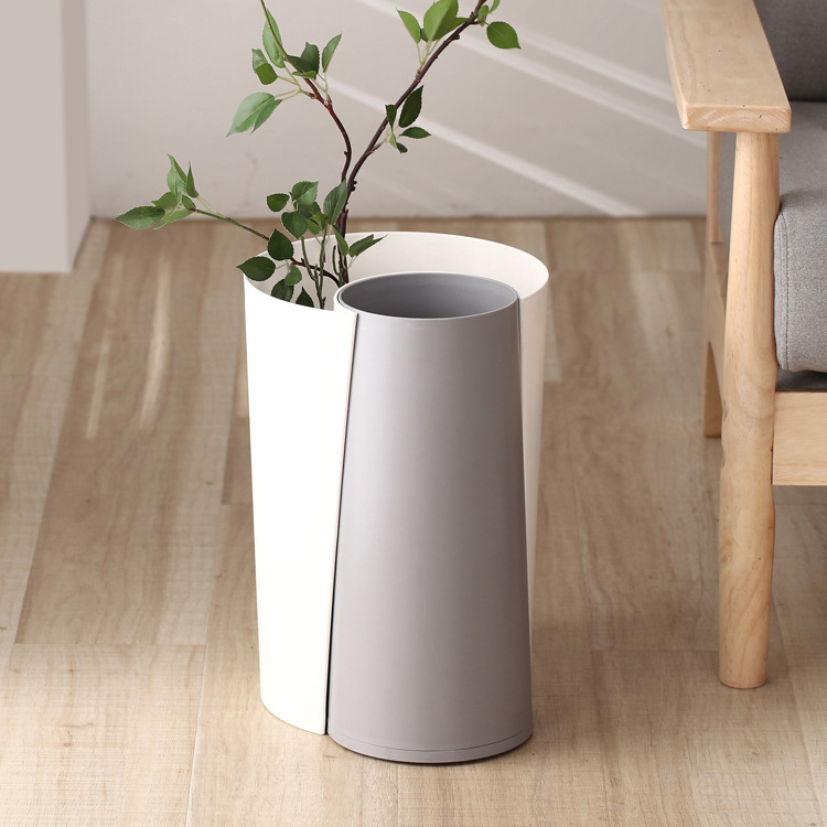 廠家直銷 雙色拼接長筒形塑料分類垃圾桶 可拆分多功能客廳收納桶