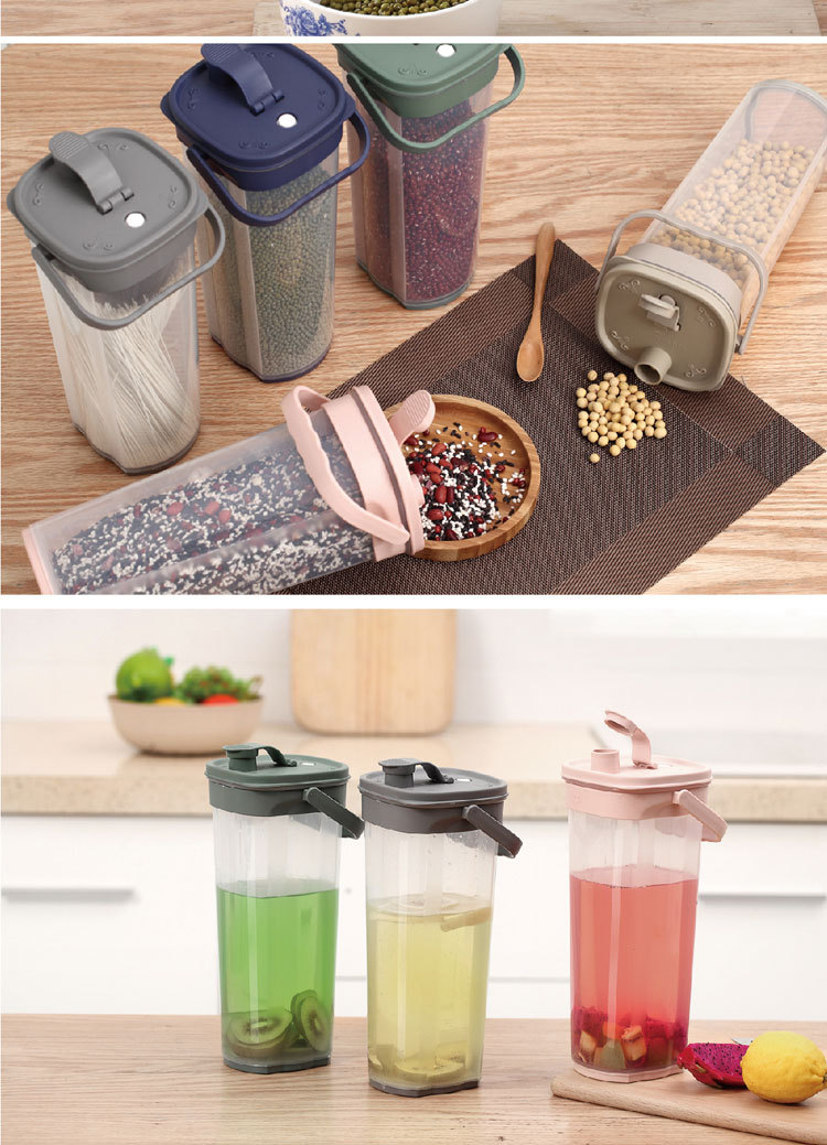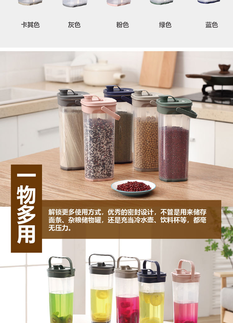 廠家批發(fā)日式廚房面條儲(chǔ)存罐帶蓋長(zhǎng)形圓桶密封罐雜糧罐塑料收納罐