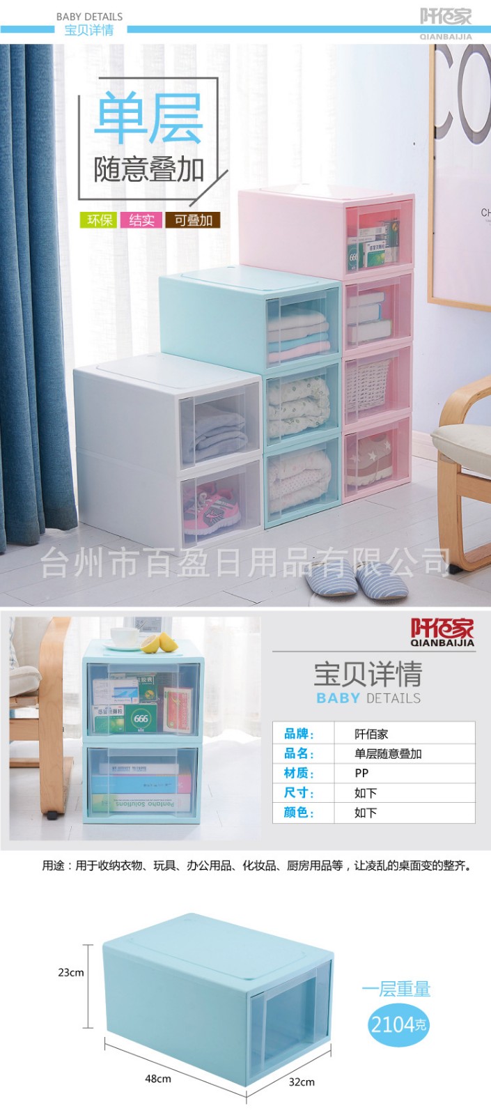 單層抽屜柜加厚自由組合柜 彩殼透明塑料收納箱抽屜式雜物儲物箱