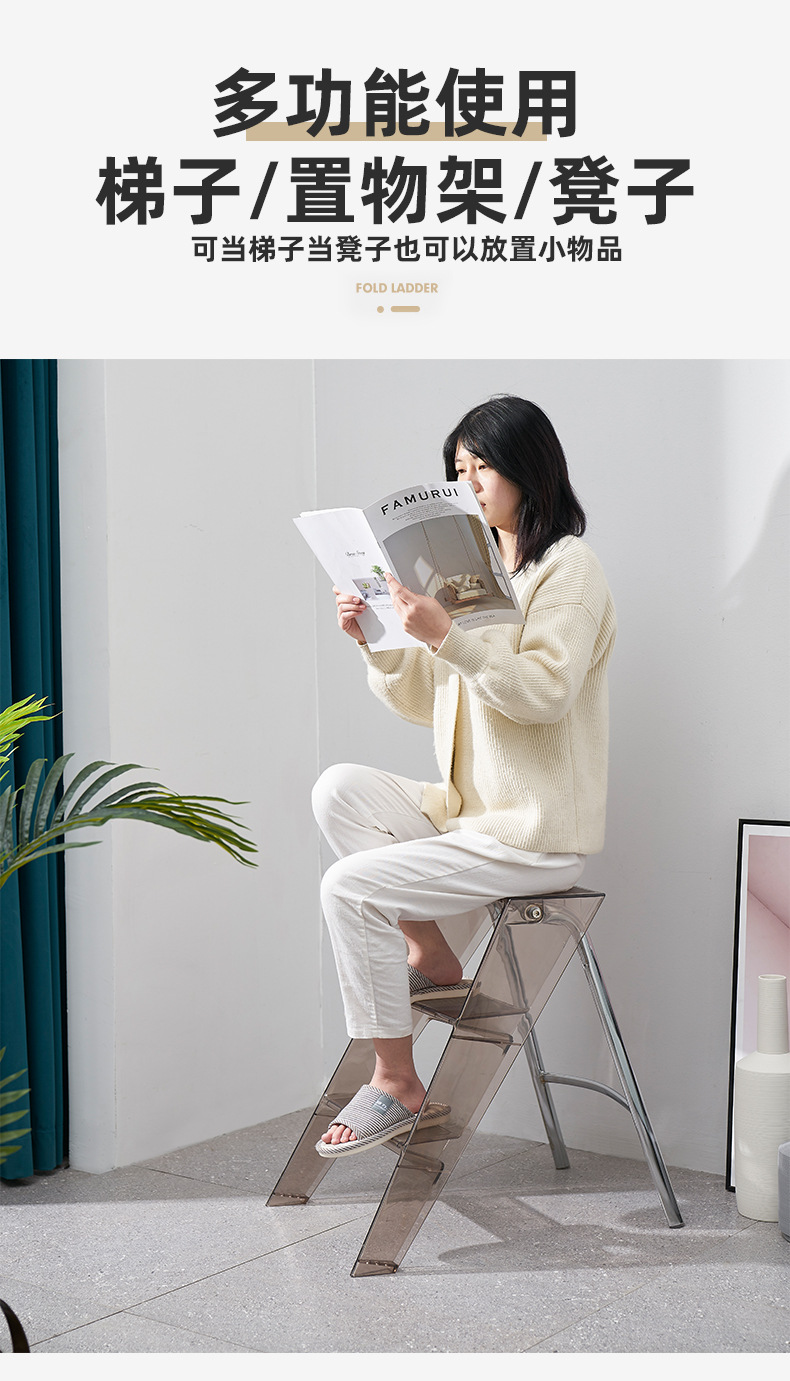 廠家熱銷 家用梯 多功能三步梯子 加厚折疊PC人字梯 不銹鋼單側(cè)梯