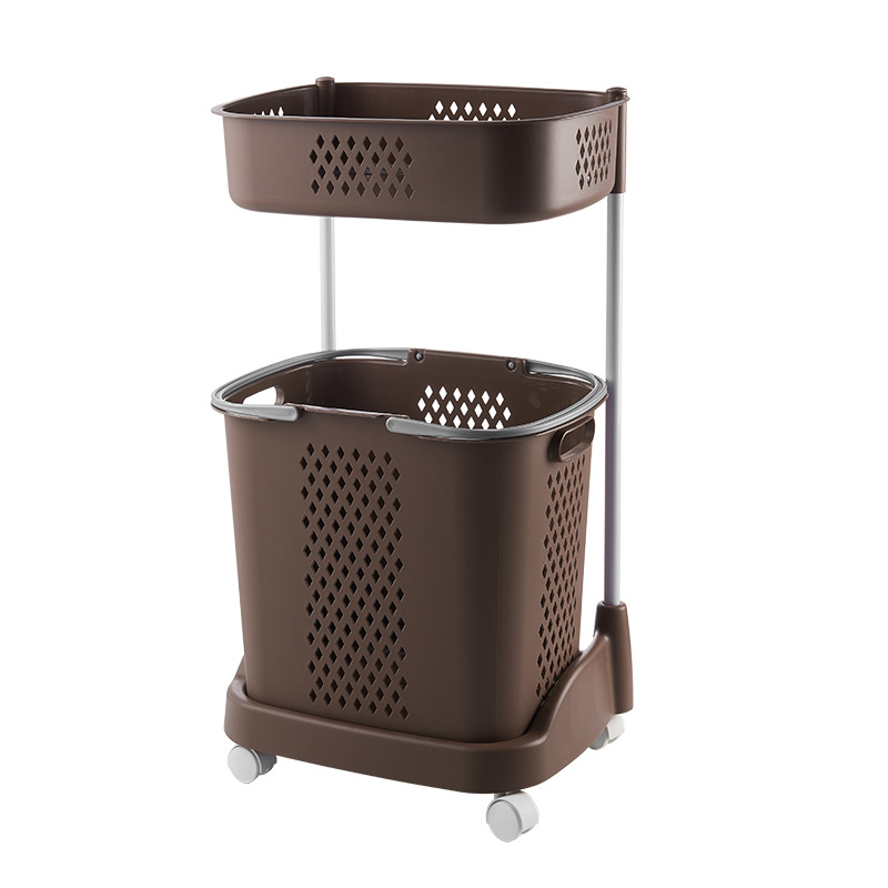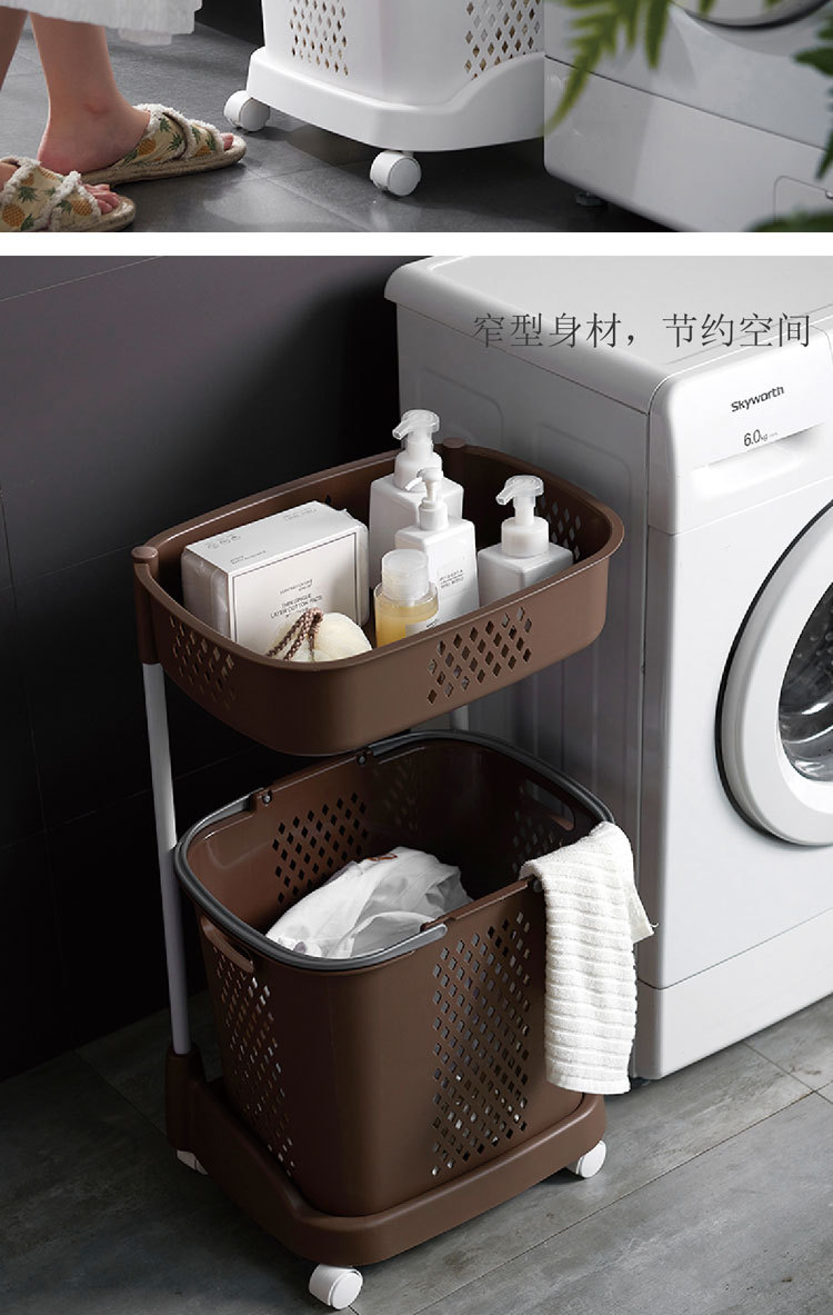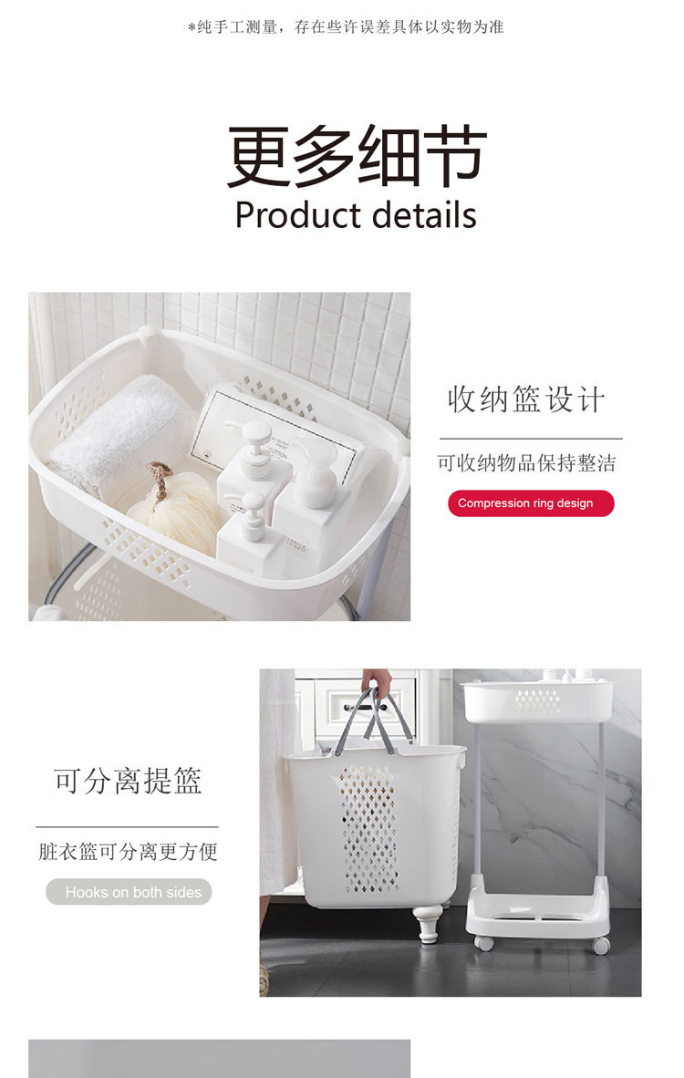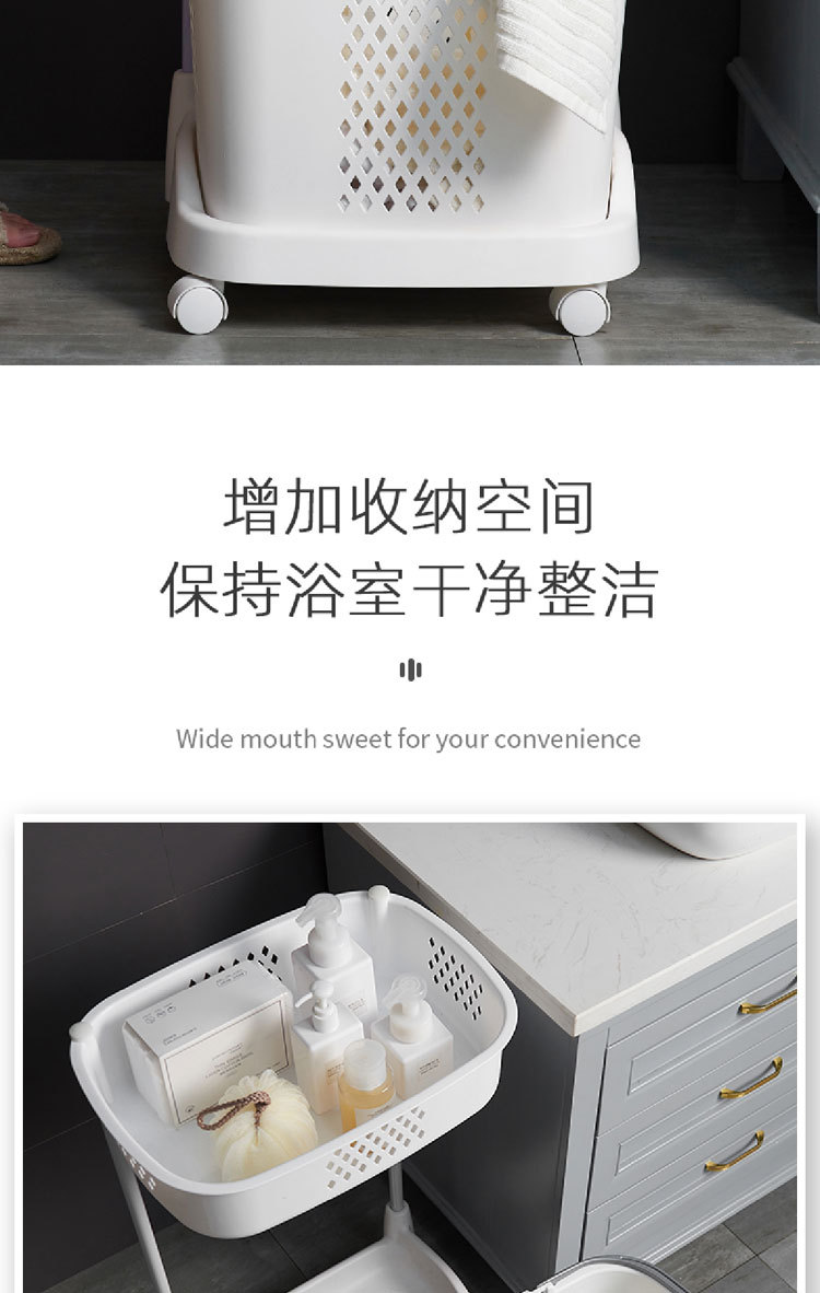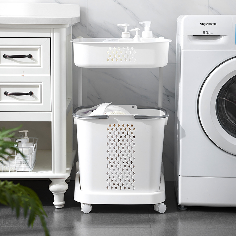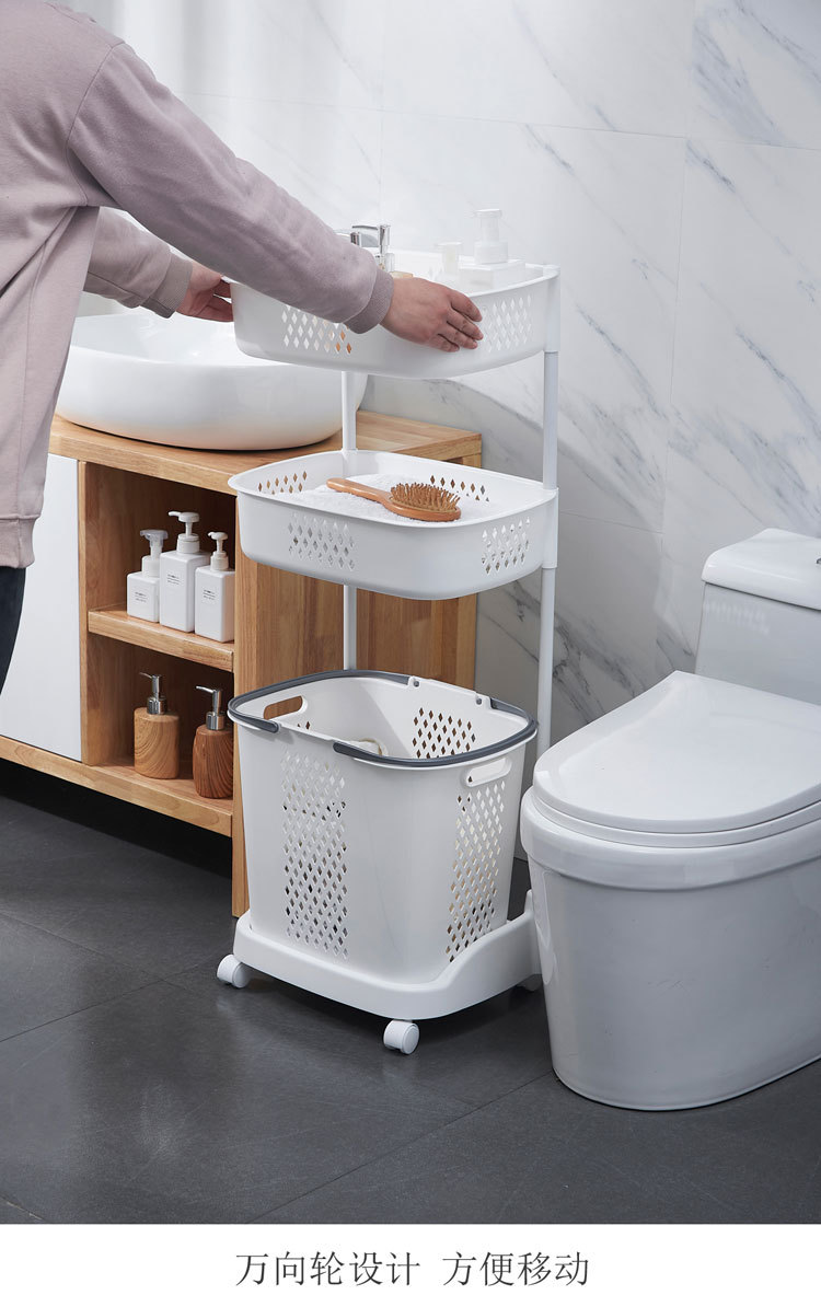 廠家直銷大號(hào)三層臟衣籃 浴室塑料臟衣收納籃 多功能帶滑輪儲(chǔ)物籃